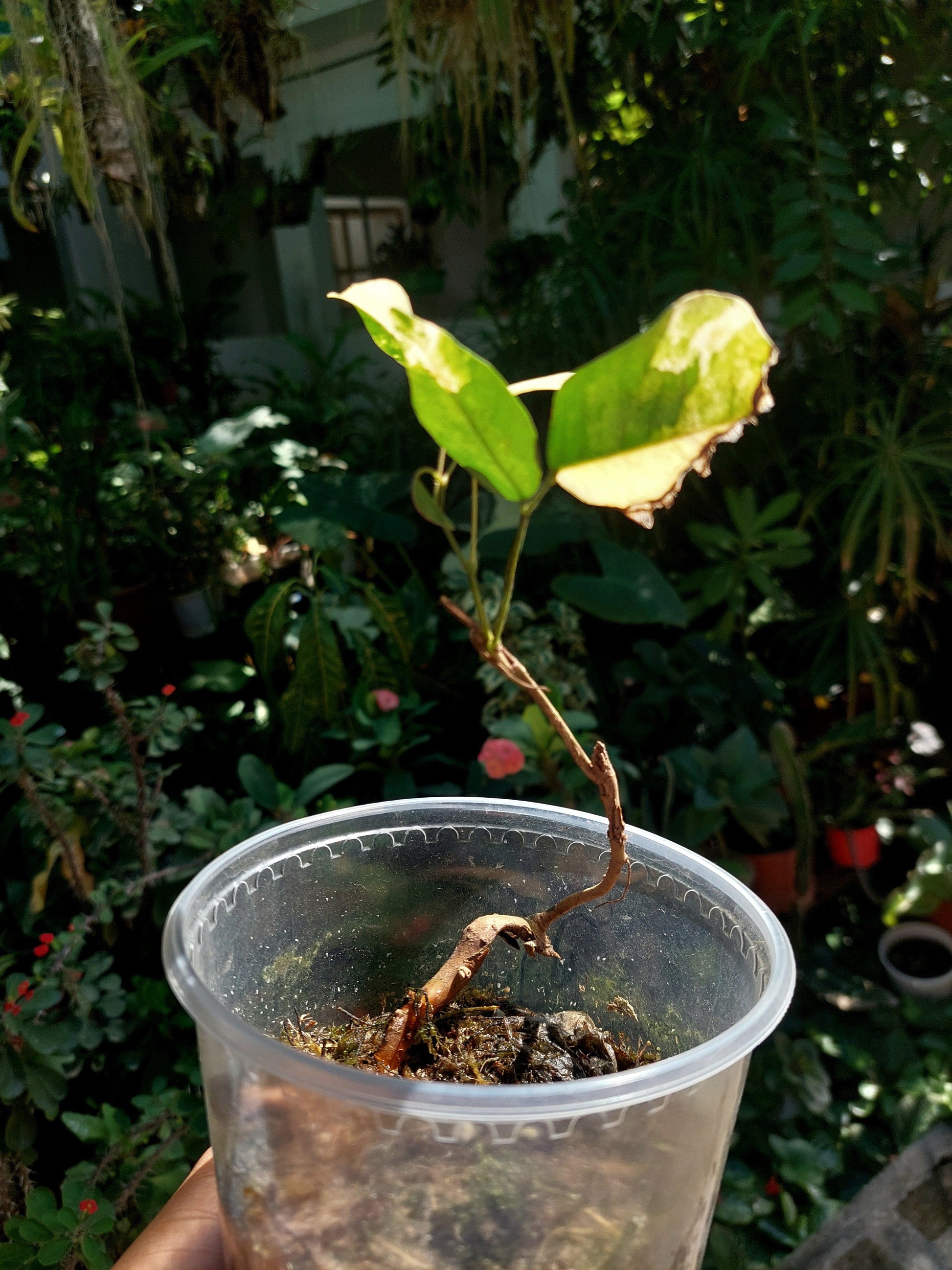Welcome to the vibrant world of Amazon Plants Peru, where nature's wonders unfold in every leaf. Behold our exquisite Variegated Pre-Bonsai Wild Ecotype, a botanical treasure hailing from the lush regions of San Martin in Peru. Despite its mysterious identity, this plant dazzles with its natural variegated foliage, a testament to the untamed beauty of the Amazon.